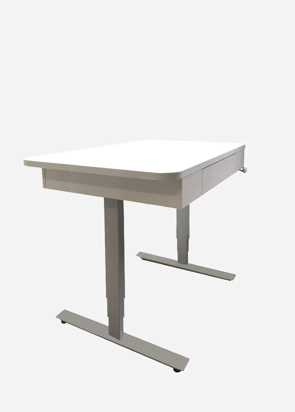 Klasiskas konstrukcijas galds ar izturīgu L veida metāla kāju, kas nodrošina darba virsmas augstuma maiņu.