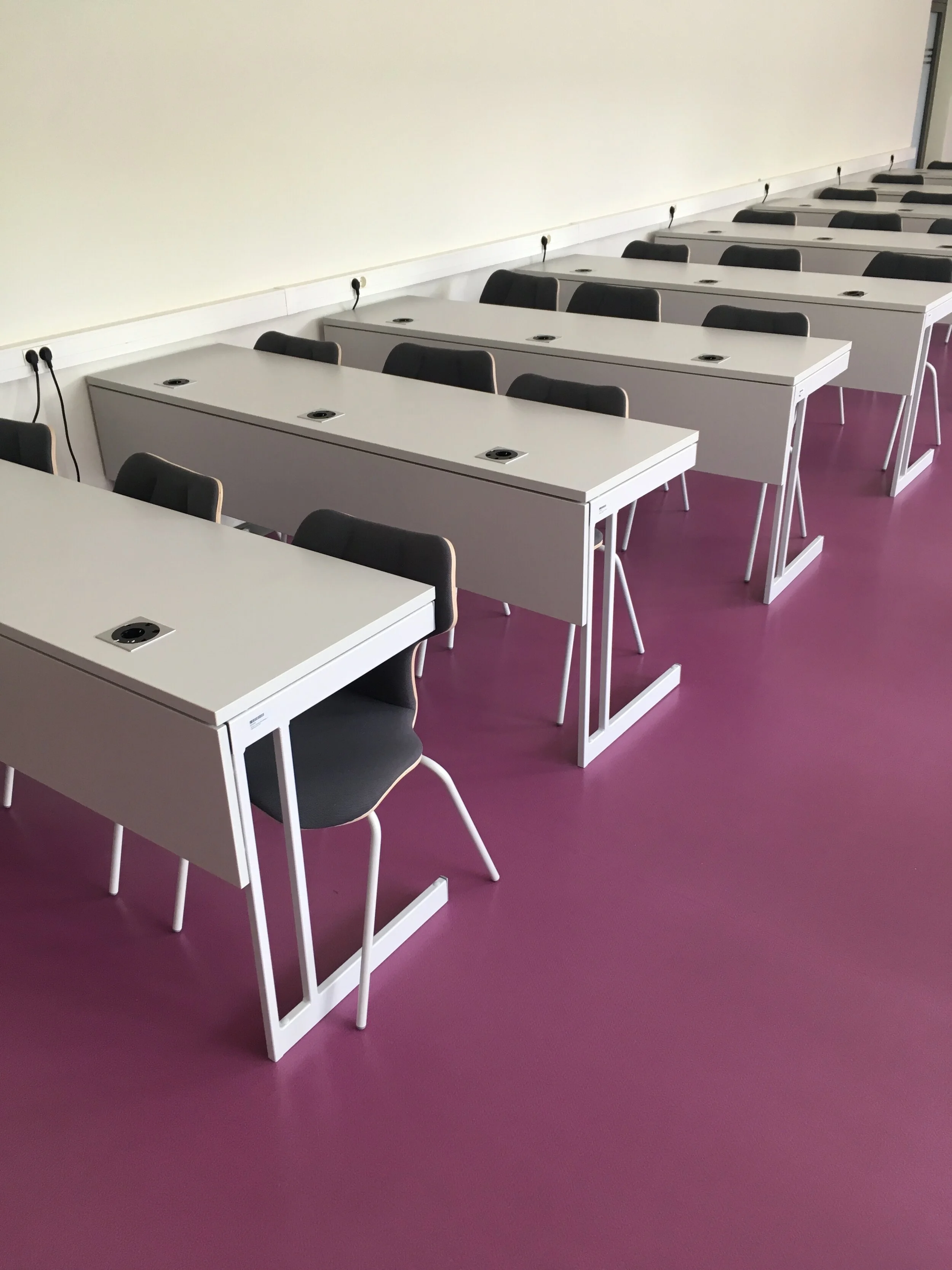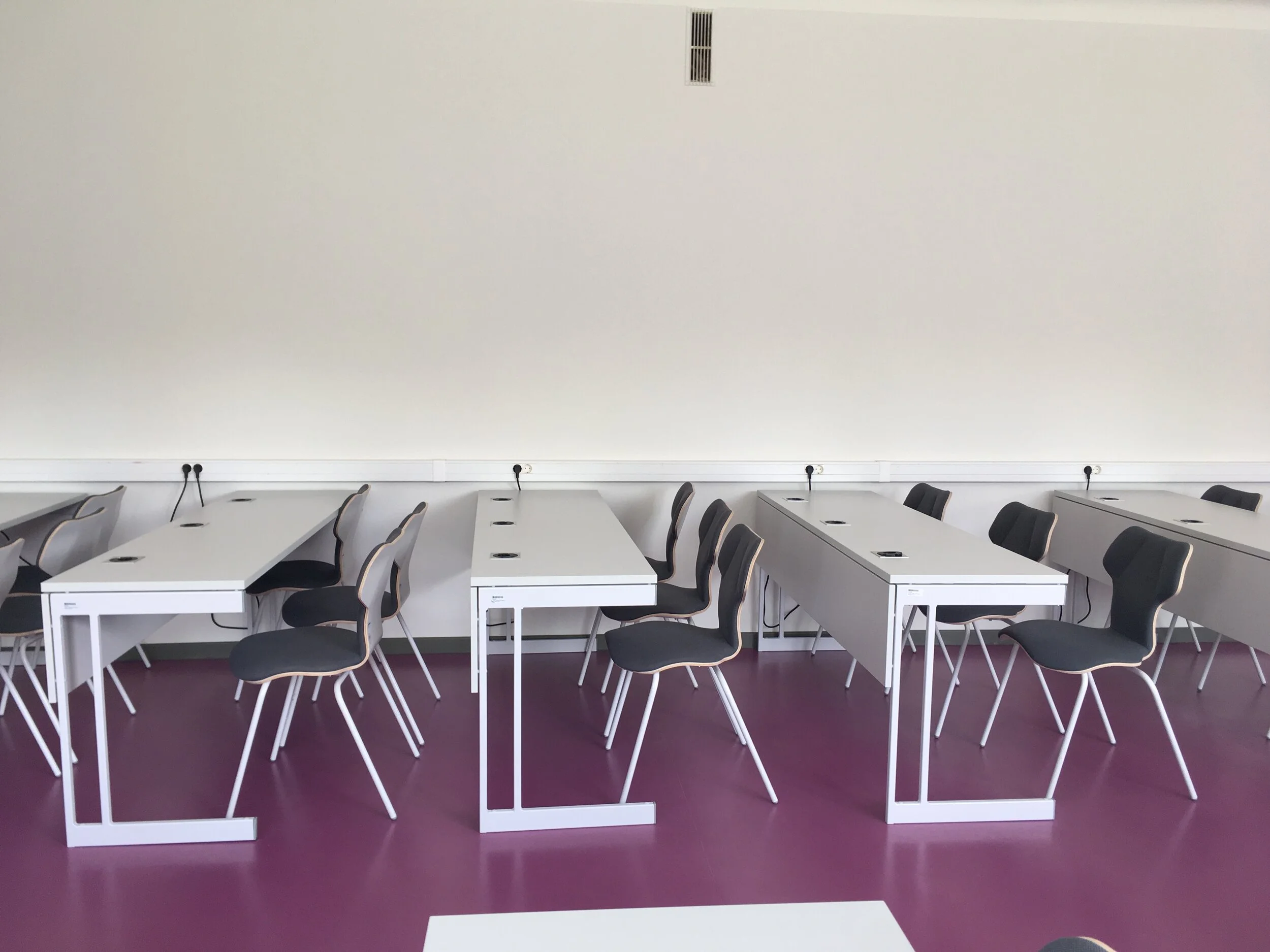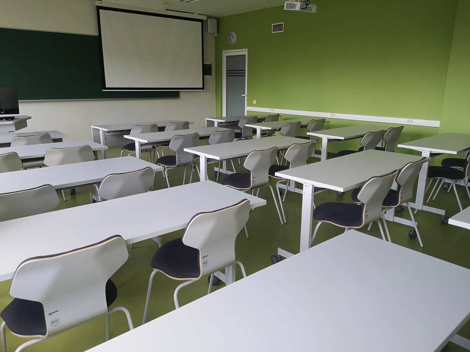 Auditorijas izveidotas tā, lai būtu pieejams gan projektors prezentācijām, gan arī liela tāfele (kas ir īpaši noderīgi matemātikas nodarbībām).