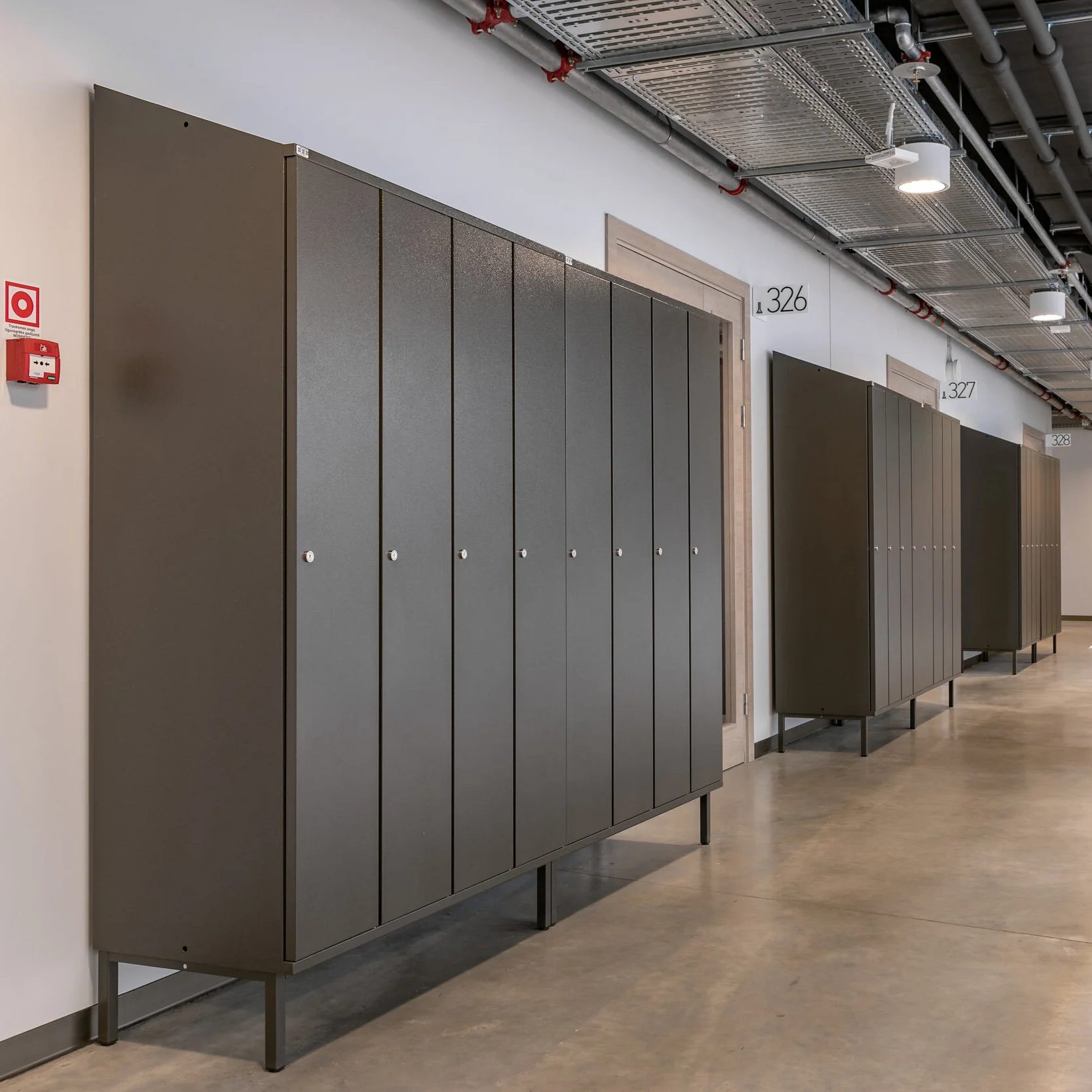 Garderobes sistēma ar metāla korpusu. Pieejama ar vai bez soliņa. Sistēmas cenu piedāvājums tiek aprēķināts atbilstoši nepieciešamajai garderobes ietilpībai un izmēriem.